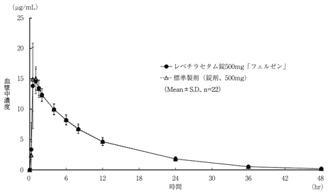 - 健康成年男孩的Reverechrado Setum片剂500毫克的“ Felsen”和1片(500毫克作为ReperiraceTam),并在禁食时通过施用单个口服或出口来测量血浆利利乙酰胺的浓度,并获得了药品参数(CMAX,AUC,AUC)。根据90%置信区定律的统计分析的结果,它在log(0.80)到log(1.25)的范围内,并确认了两种药物的生物学等效性(交叉方法)。