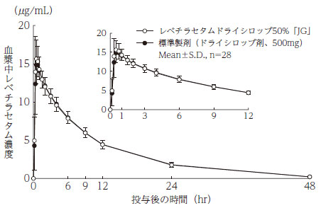 - Rebechiracetam干糖浆50%“ JG”和标准配方,1G(500 mg为re -platila setum),每种糖浆都快速化为健康的成年男孩,测量血浆中的不愉快浓度并获得。 (AUC,CMAX)根据90%的置信区定律,它在log(0.80)到log(1.25)的范围内,并确认了两种药物的生物等效性。 2)