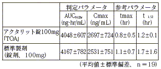 - TOA Pharmaceutical Co.,Ltd。:acterrit锁100mg的“ TOA”生物学等效测试(在 - 房屋材料中)