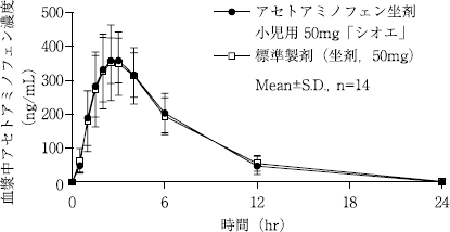 儿童对乙酰氨基酚的抑制 50mg“ Shio” | 2583.5±592.1 | 383.8±81.1 | 2.6±0.5 | 3.0±0.6 |