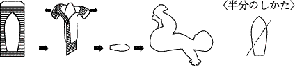 为了取出这种药物,首先将一个容器分开,如图所示,从接缝的上端撕裂,然后去除灌木。当使用1/2时,如图所示,抑制是对角线断开的。