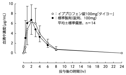 EVE PROFEN片剂100mg“ Taiyo”单一快速的Organship药物参数(平均±标准偏差,n = 14)