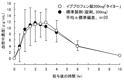 EVE PROFEN片200mg“ Taiyo”禁食对抗促销药物palameter(平均±标准偏差,n = 20)