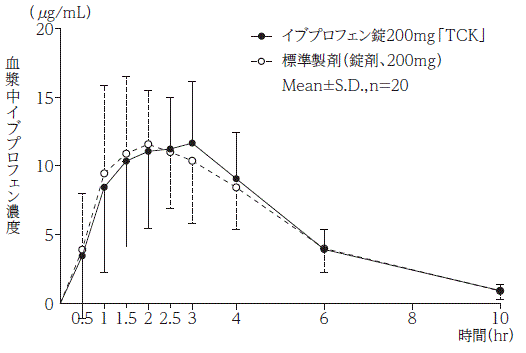 - EVE Profen片剂200 mg“ TCK”和标准配方是一片(Ibukufen 200 mg)1片1片(IBU PROFER 200 mg)健康的成年男孩,可以测量血浆中不愉快的身体浓度,并测量算术中不愉快的身体浓度,获得在集中社会社会下对AUC和C MAX的统计分析的结果,它在原木(0.80)到原木(1.25)的范围内,并确认了两种药物的生物等效性。 1)