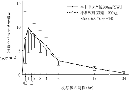 | Etdorak片200mg“ SW” | 12.8±3.4 | 1.6±1.3 | 5.8±2.3 | 61.0±10.8 |