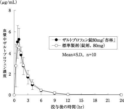 | Zartoprofen片80mg“ Kyorin” | 13.77±3.75 | 5.69±1.23 | 0.87±0.17 | 2.40±1.13 |