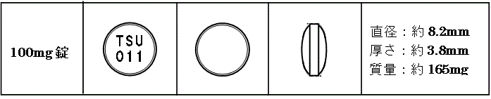 - 盐酸胺盐片100mg“ Tsuruhara”是白色至细色的白色膜涂料片剂,标识符号为TSU011。