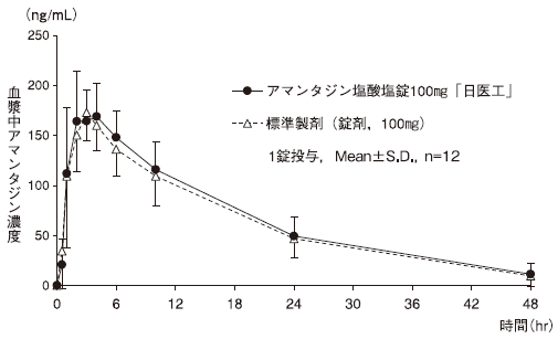 - 通过在单片(100 mg作为半甲烷基盐酸盐)中禁食,通过在单片(100 mg作为Amantadine盐酸盐)中禁食来获得100 mg“ Nissho化学物质”和标准制剂100 mg的盐酸盐盐片和标准制剂。揭示了两种药物的生物等效性。 1)