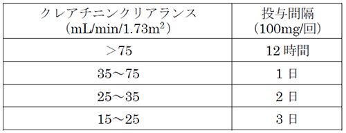 - 1。由于这种药物的大部分在尿液中以不变的身体排泄,因此在肾功能降低的患者中,血浆的浓度很高,并且副作用(例如意识障碍,心理症状,抽搐和副作用,例如表达)因此,经过精心给药,例如根据肾功能的程度扩展给药间隔。 (请参阅有关[违反],“护理管理”和“副作用”的部分)