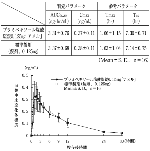 此外,对于0.5毫克涂成盐酸的Pissol盐片,“ Amer”,这是针对具有不同含有不同包含的口服固体形成的生物等效测试指南(2006年11月24日,药物和食品检查号1124004)“当盐的片剂0.125 mg”时Amel”被用作标准准备,洗脱行为相等,被认为是生物学的。 2)