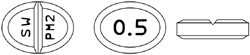 | 药物 | 直径(mm) | 重量(毫克) | 厚度(mm) | 特点 | 识别代码 | 外形 |