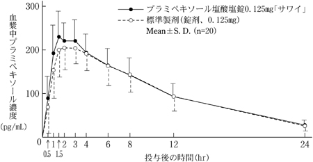 | 普拉米甲醇盐酸片0.125mg“ sawai” | 251±55 | 2.1±0.9 | 6.8±1.1 | 2597±601 |