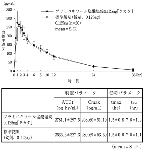 普拉米甲醇盐酸片0.125 mg“ takata” / pramipexole盐酸片0.5 mg“ takata”