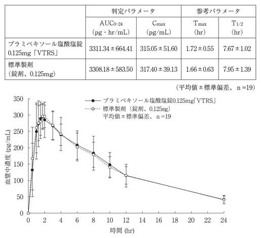 - 在健康的成年男孩中,杂种盐酸盐量盐酸盐片0.125 mg的“ VTR”和1片,通过交叉(0.125 mg斑点盐酸盐氯化物)测量斑块上的plamopexole浓度。根据90%的置信区定律,它在log(0.80)到log(1.25)的范围内,并且两种药物的生物学当量已得到证实。