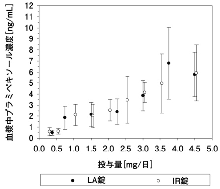 下图显示了当La锁处于0.375毫克至4.5 mg/天或IR片剂在进餐后进食后,饭后进食后,la锁为0.375毫克至4.5毫克/天,进餐后,la锁的恒定状态为0.375毫克至4.5毫克/天,进餐后,la锁持续的状态下,则显示了非变化的等离子体。 LA片剂后的血浆浓度增加了剂量。当给予同一每日剂量的LA锁或IR片剂(1.5 mg,3.0 mg,4.5 mg/天)时,槽中的血浆浓度几乎相同4)