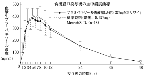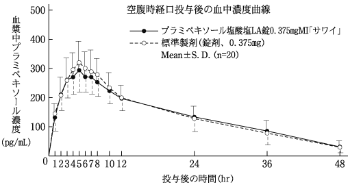 | 邮政管理 | 普拉米甲醇盐酸盐LA片0.375 MGMI“ sawai” | 430±85 | 5.2±2.5 | 8.9±2.5 | 8049±1280 |