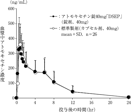 - ATMOXETIN片剂5mg“ DSEP”,Atomokisetin片剂10mg“ DSEP”和Atomoxetin片剂25mg“ DSEP”是“具有不同含量的口服固体形成的生物等效测试指南(2月29日,2012年2月29日,2012年的药物食品检查0229)),基于“ 10号) “,当原子苷片片40 mg“ DSEP”用作标准制剂时,洗脱行为是相等的,被认为是生物学的。