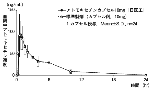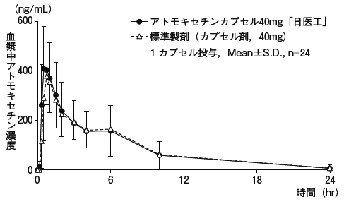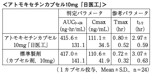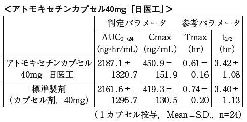 - Atmoxetine Capsule 25mg“ Nikkyo”基于“生物外的形式形式的口服固体配方的形式式配方,其含量不同(2002年2月29日,2012年2月29日,2012年2月29日,制药和食品评论0229 No. 10)”,Atmosoxetin capsule 40mg” Nisshin Medical时这项工作被用作标准准备,洗脱行为相等,被认为是生物学的。 3)