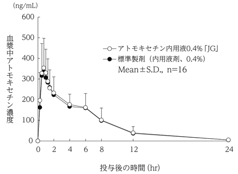 - Atmoxetine的0.4%“ JG”和标准配方,以及跨界方法,10 mL(40 mg As Atomoxetine),一个大型健康男孩,具有大量清除率,测量了血浆不愉快的浓度。 90%的药物可靠截面法(AUC,CMAX),在对数(0.80)到log(1.25)的范围内,并且已经确认了两种药物的生物当量。 1)