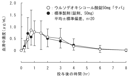 Ursodoro Xicolic Acid片剂50 mg“ Teva”快速耗尽药物的口服给药(平均±标准偏差,n = 20)