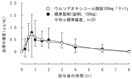 Ursodoro Xicolic Acid片剂100 mg“ TEVA”快速耗尽的口服药物(平均±标准偏差,n = 20)