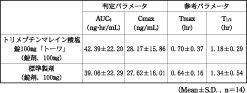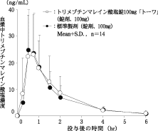 - 100毫克三铁蛋白马来酸片剂和标准制剂,通过交叉方法1片(100毫克作为Trimevin海洋酸),无法在血浆中斑块。由于对获得的药代动力学参数(AUC,CMAX),The AUC,CMAX)的统计分析的结果确认了两种药物的生物等效性(1980年5月30日,第718号药品修订版)。(基于) 1) 。