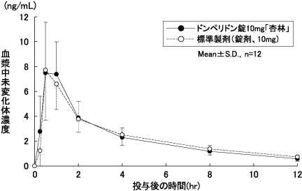 - 此外,Domperidon片剂10mg“ kyorin”和标准制剂通过跨界方法(10 mg作为Domperidon)进行,并通过禁食和吃单个口腔器官(AUC的统计分析)获得了不愉快的身体浓度。 ,CMAX)证实了两种药物的生物学当量。