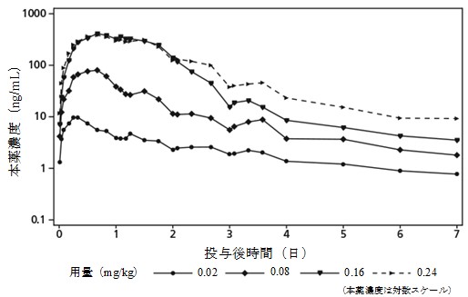 在AGHD患者服用第二名患者的第四周,0.02、0.04、0.08和0.12 mg/kg的药代动力学参数在皮下皮下第四周。据认为,药物的暴露在药物给药后一到两周内达到了稳态。在管理第四周,AUC 0-168H的累积率(平均值)为1.0-2.0。此外,在北欧款(平均剂量:0.004 mg/kg)给药时,AUC 0-24H (几何平均值)每天一次给AGHD患者施用北托款(平均剂量:0.004 mg/kg)时2为17 ng/h。/ml,C max (几何平均值)为1.5 ng/ml,t max (中值)为2.8小时,终端相的半寿命(几何平均)为6.8小时(外国数据) 2)
