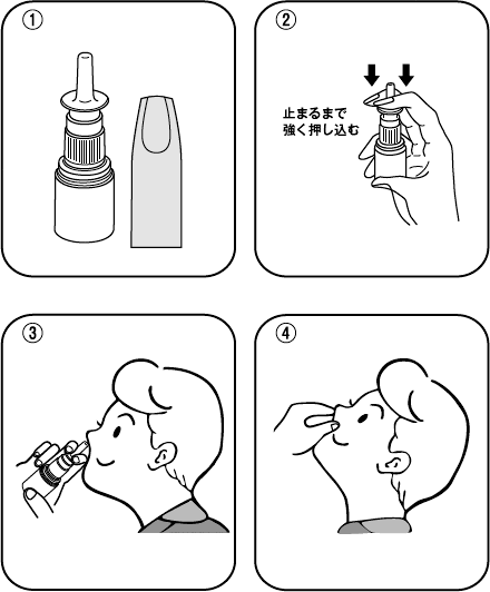 - 向后倾斜头,将喷嘴的尖端放在鼻腔中,停止并喷洒。