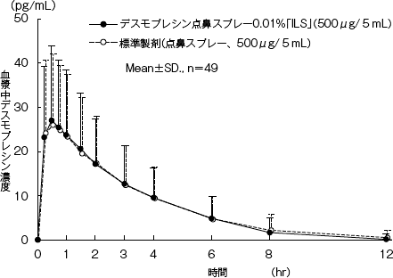 - Desmo Plesin Shano喷雾0.01%“ ILS”和标准配方,通过交叉方法在左右鼻腔中进行一次喷雾剂(20μg作为Desmopresine乙酸盐水合物),并消耗了一次性的健康成人男孩的单一给药根据对仿制药的生物学当量测试指南,确认两种药物的生物等效性以符合标准。